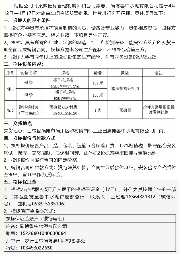 【招標(biāo)公告】魯中水泥
