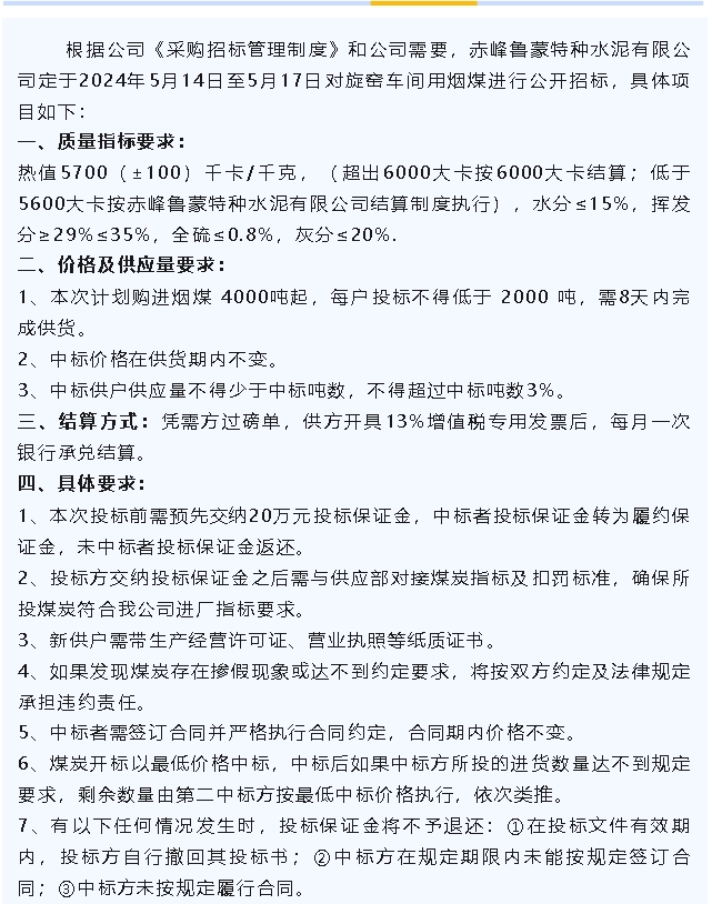 【招標公告】魯蒙水泥