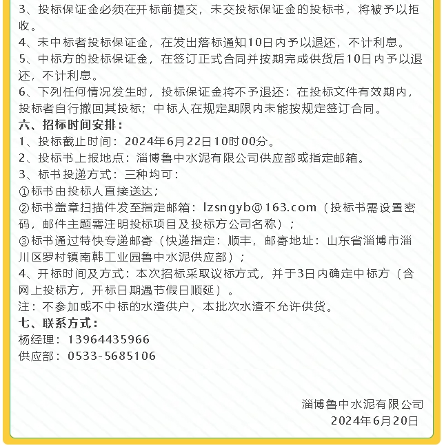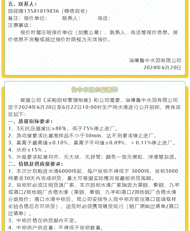 【招標(biāo)公告】魯中水泥運(yùn)輸、水渣招標(biāo)