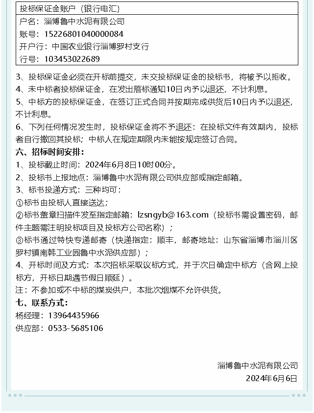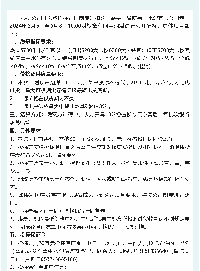 【招標(biāo)公告】魯中水泥
