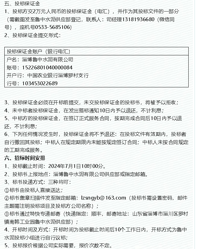 【招標(biāo)公告】魯中水泥、魯蒙水泥