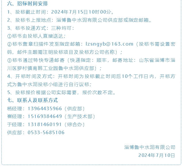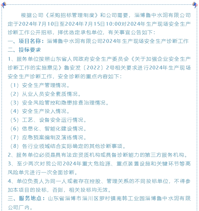【招標(biāo)公告】魯中水泥