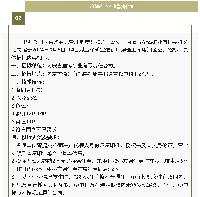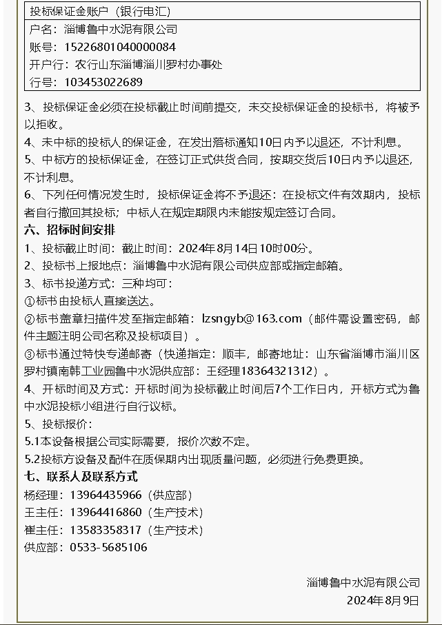 【招標(biāo)公告】魯中水泥板式換熱器、螢澤礦業(yè)油酸招標(biāo)