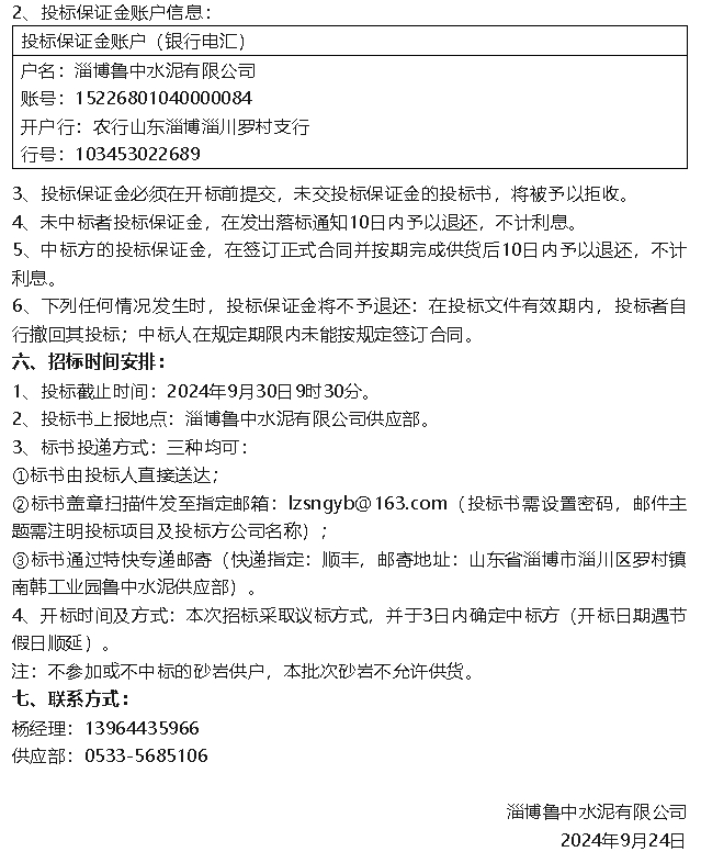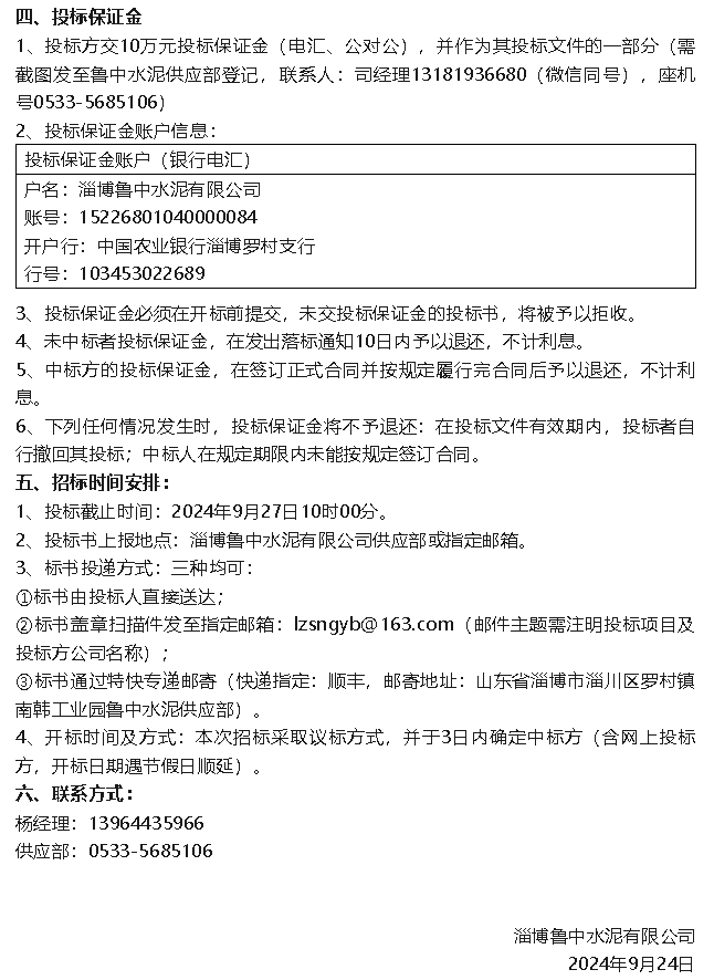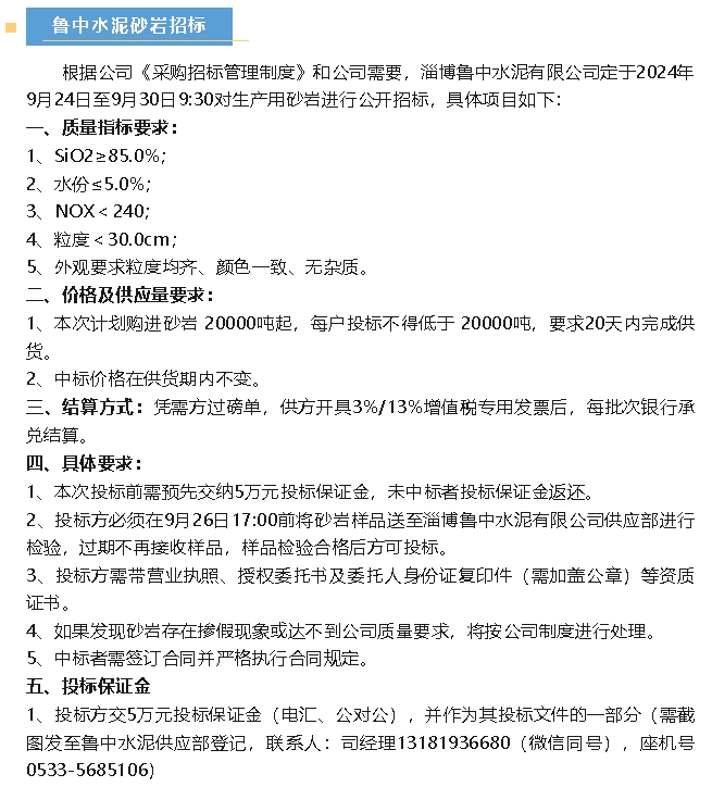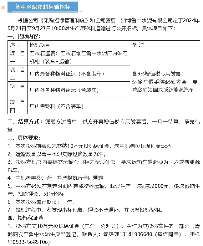 【招標公告】魯中水泥
