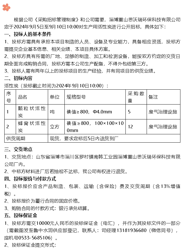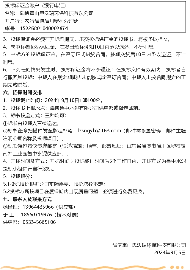 【招標(biāo)公告】重山思沃瑞