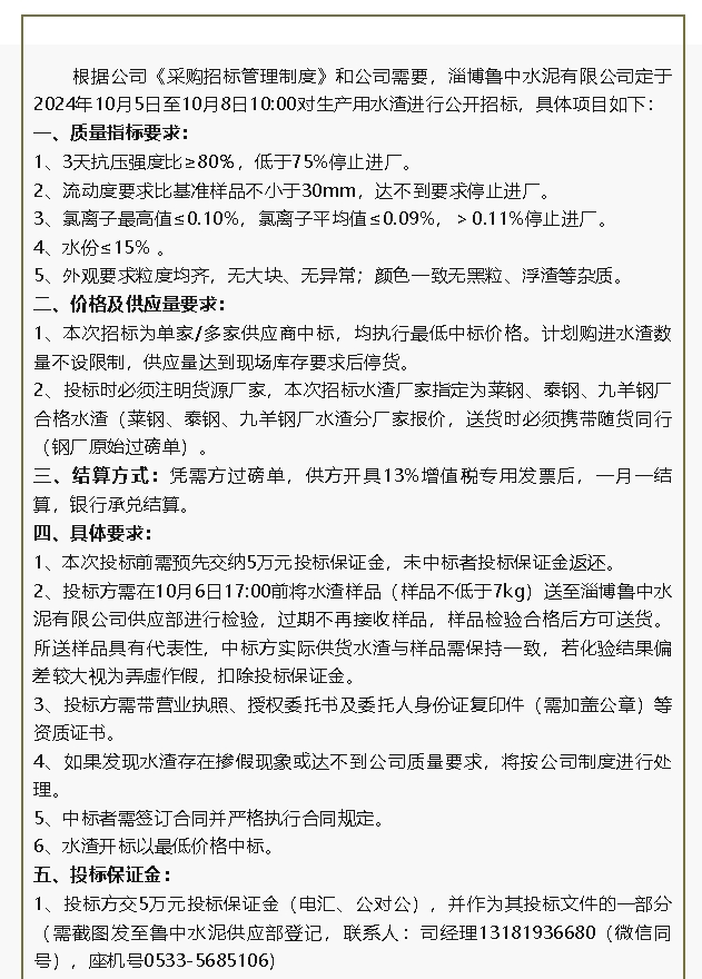 【招標公告】魯中水泥