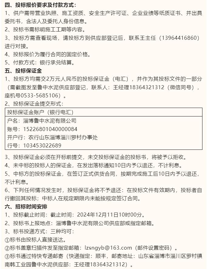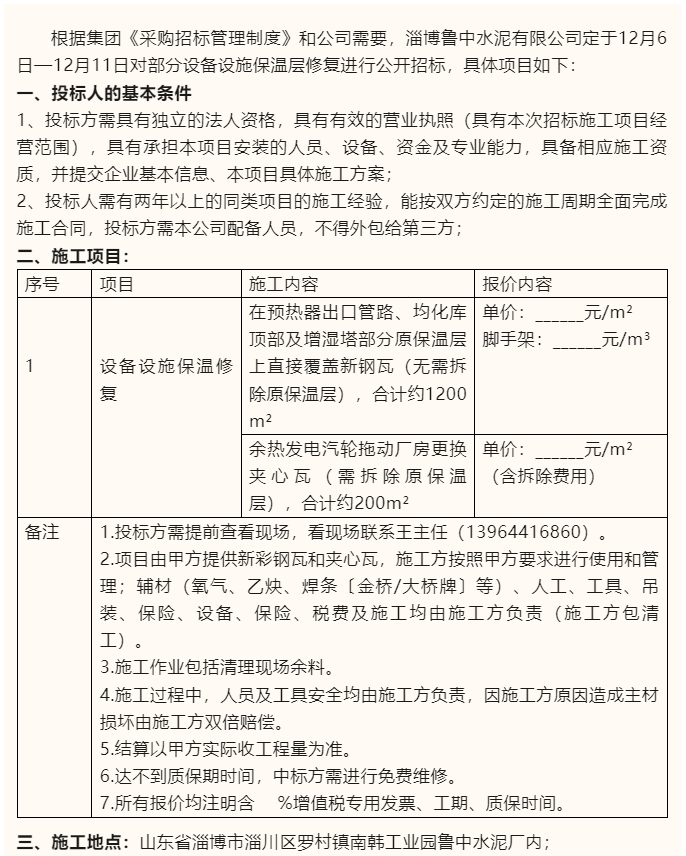 【招標(biāo)公告】魯中水泥