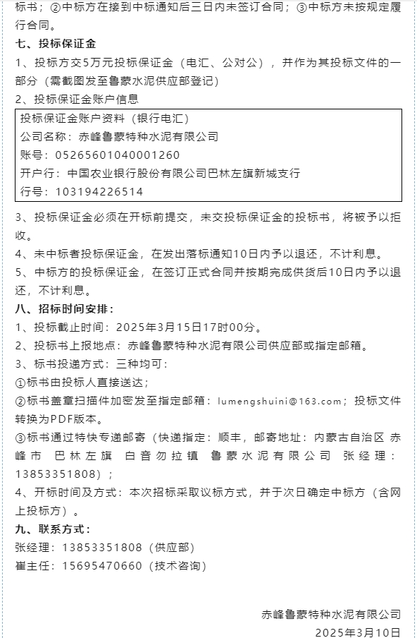 【招標(biāo)公告】魯蒙水泥