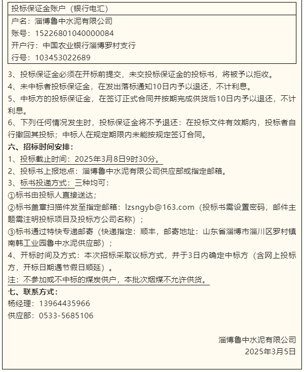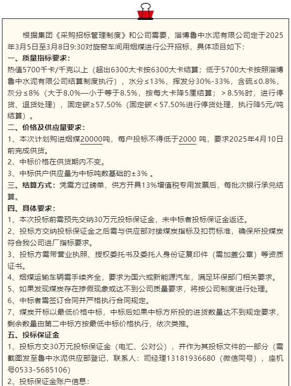 【招標公告】魯中水泥