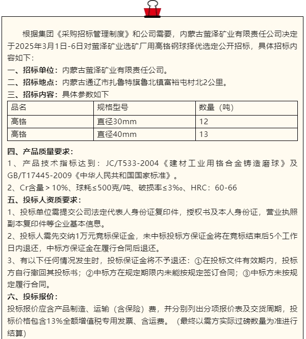 【招標(biāo)公告】螢澤礦業(yè)