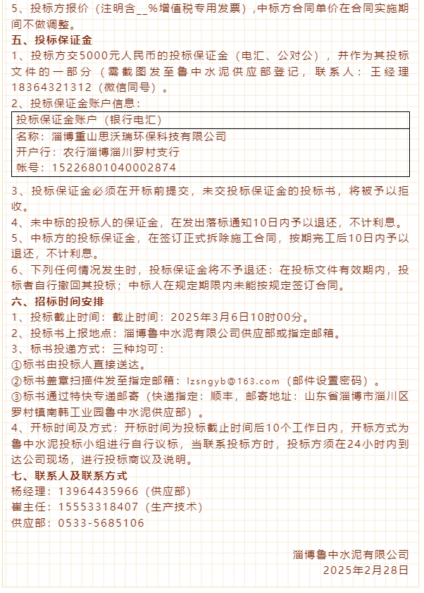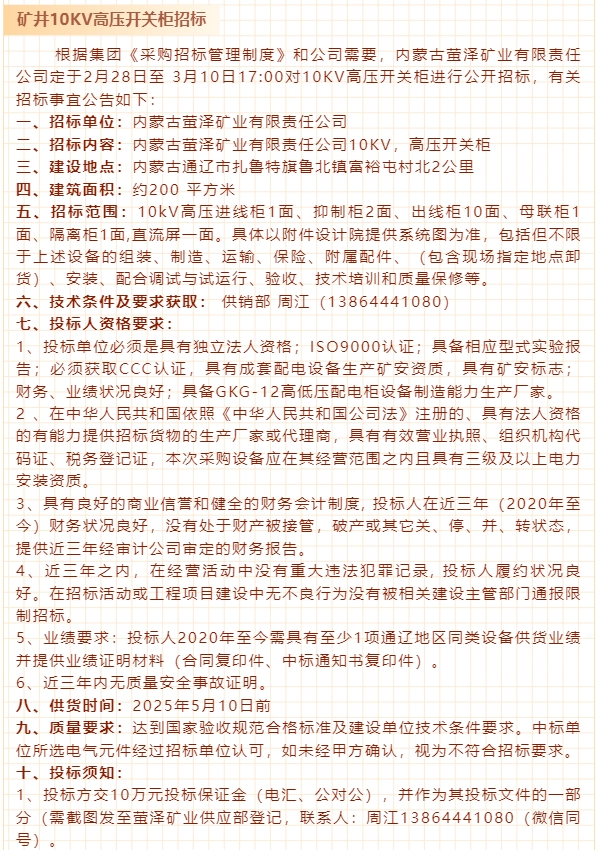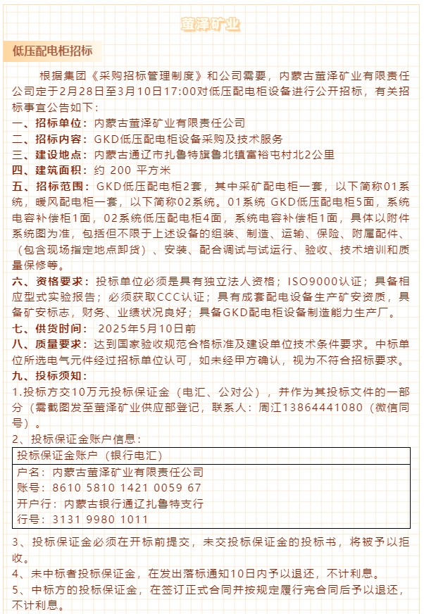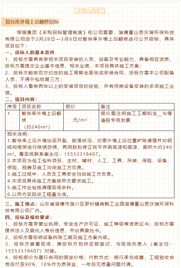 【招標(biāo)公告】重山思沃瑞、螢澤礦業(yè)