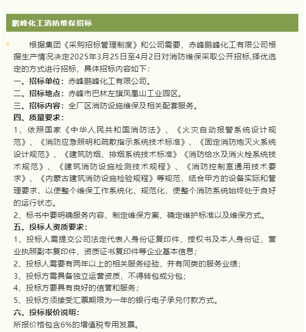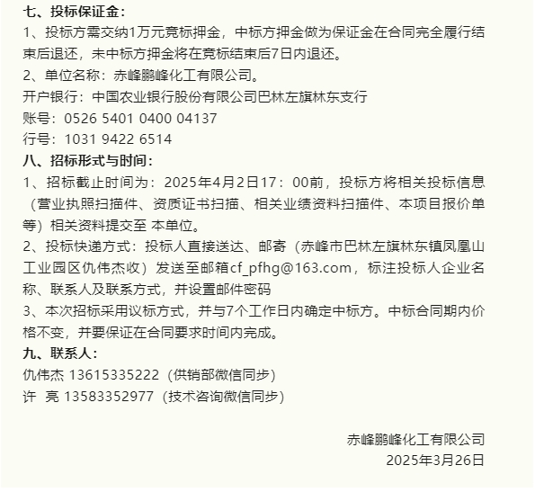 【招標公告】重山集團、鵬峰化工、魯中水泥