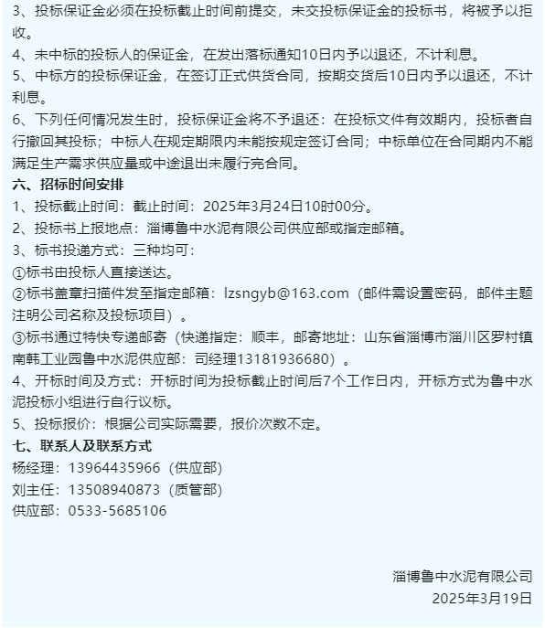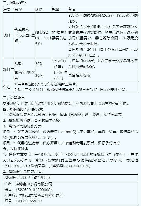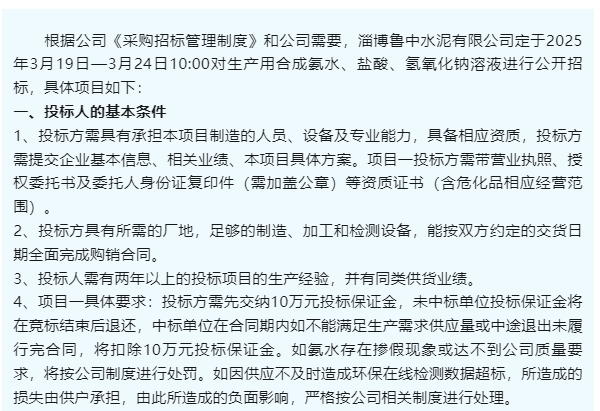【招標(biāo)公告】魯中水泥
