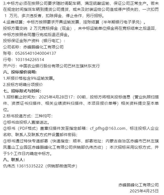 【招標(biāo)公告】鵬峰化工