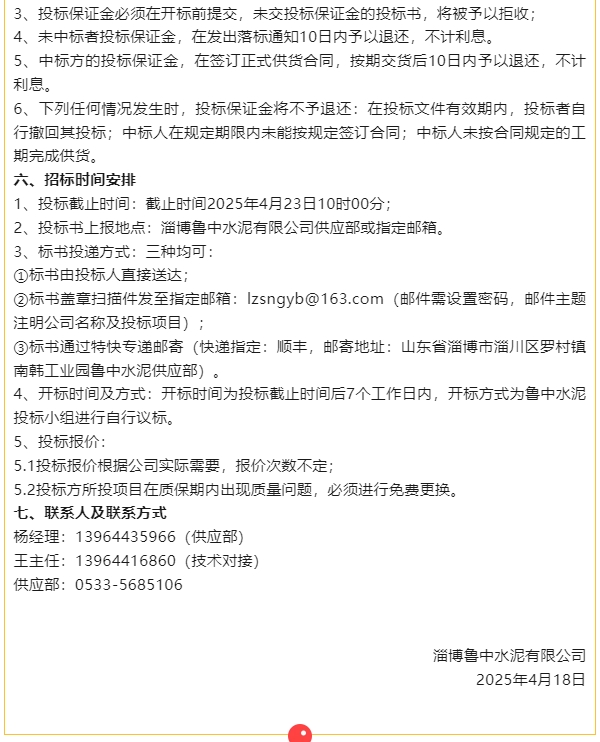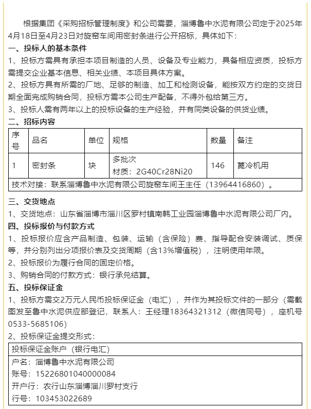【招標(biāo)公告】魯中水泥