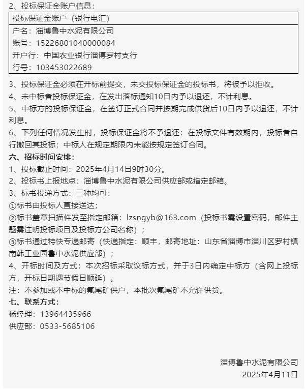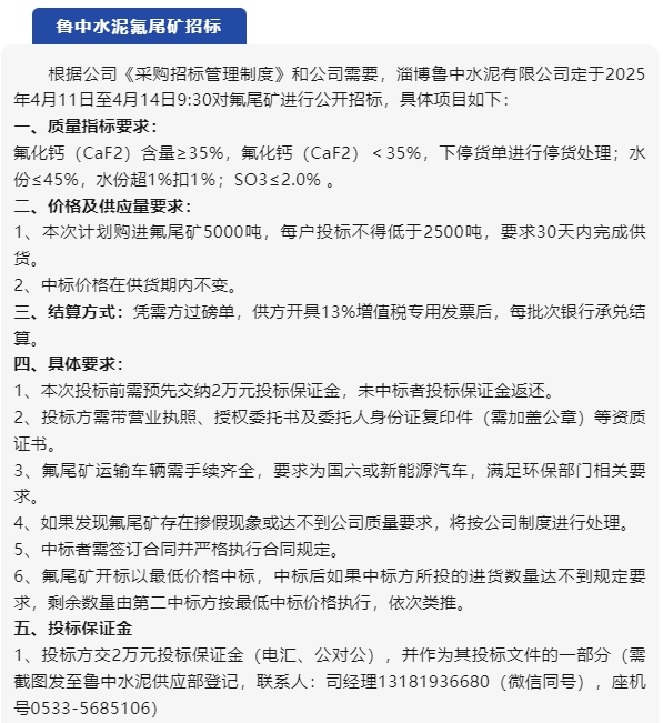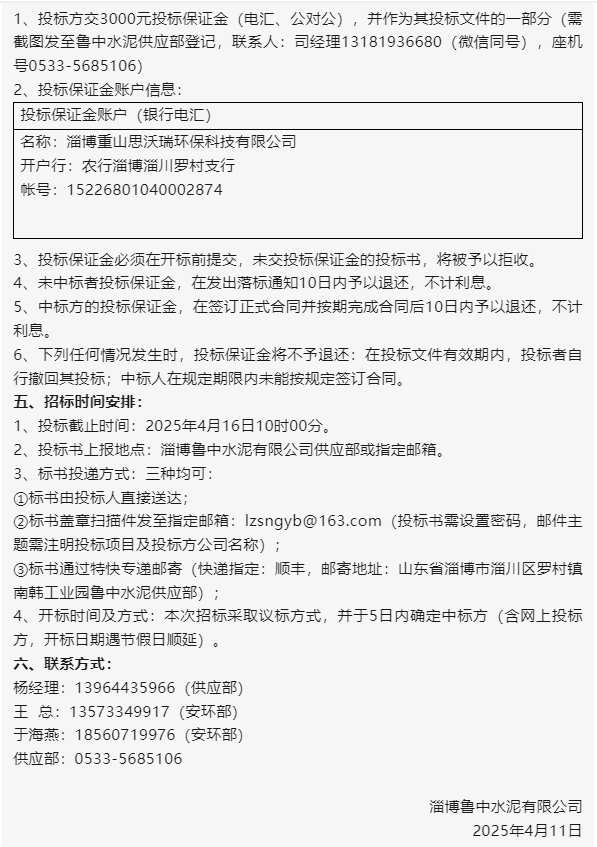 【招標(biāo)公告】魯中水泥、重山思沃瑞