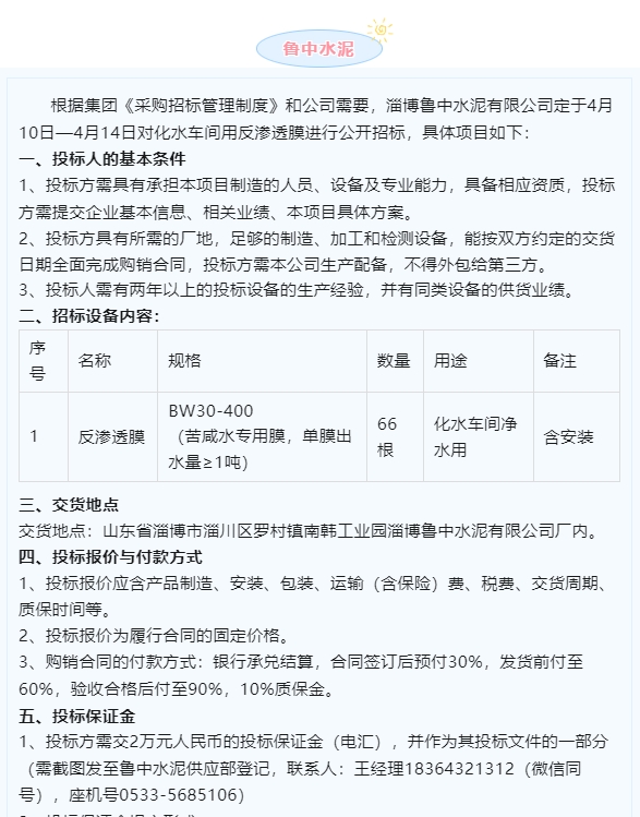 【招標公告】魯中水泥、重山光電