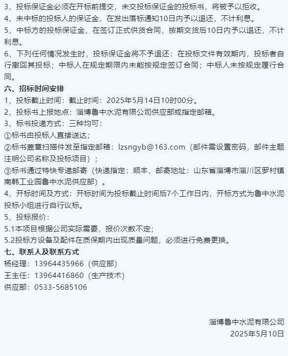 【招標公告】魯中水泥