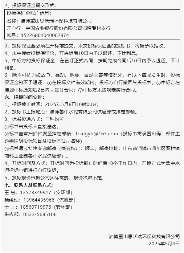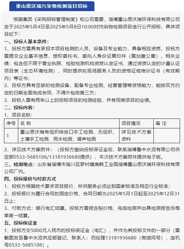 【招標(biāo)公告】魯中水泥、重山思沃瑞