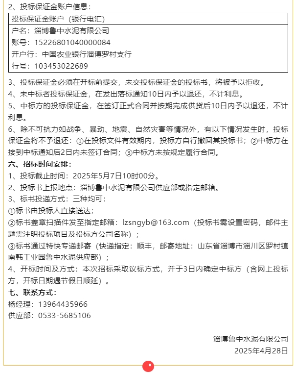【招標(biāo)公告】魯中水泥