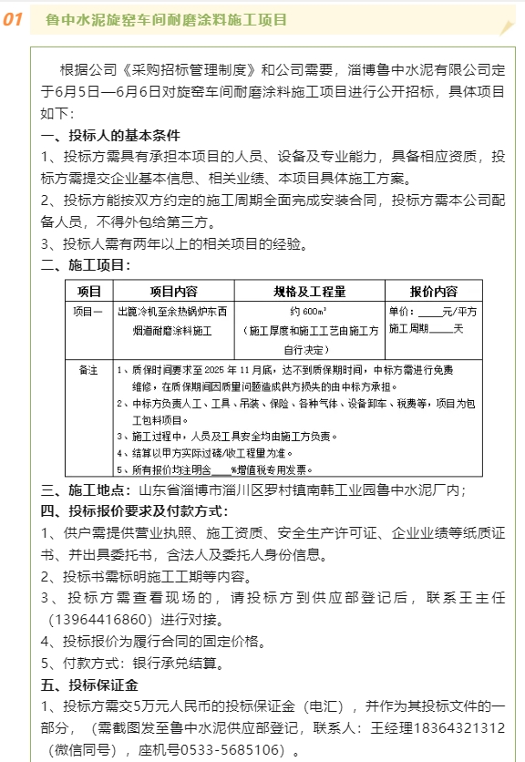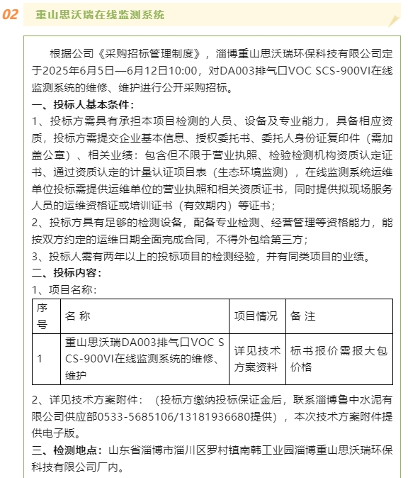 【招標公告】魯中水泥、重山思沃瑞