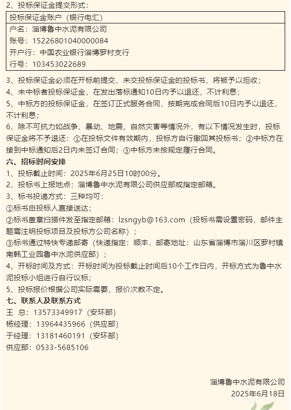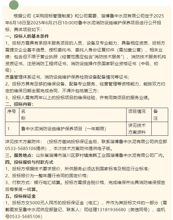 【招標(biāo)公告】魯中水泥