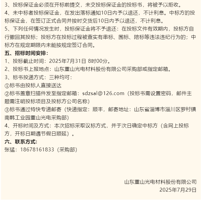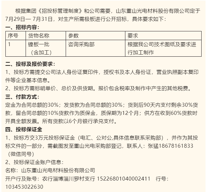 【招標(biāo)公告】重山光電