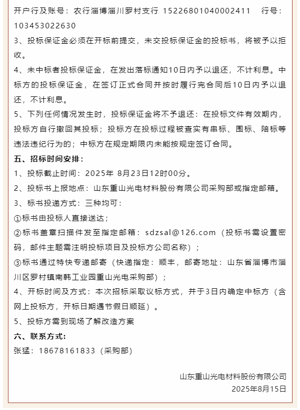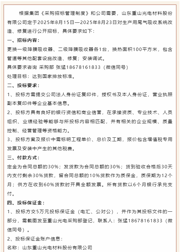 【招標(biāo)公告】重山光電
