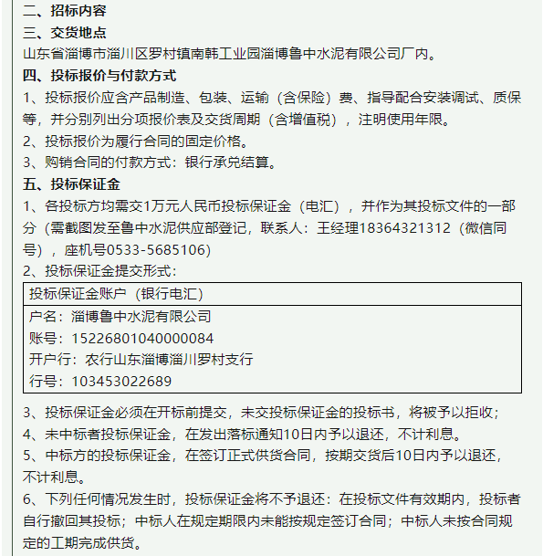 【招標公告】魯中水泥、重山思沃瑞、重山光電