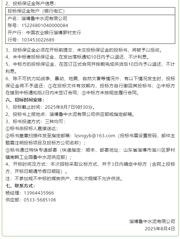 【招標(biāo)公告】魯中水泥