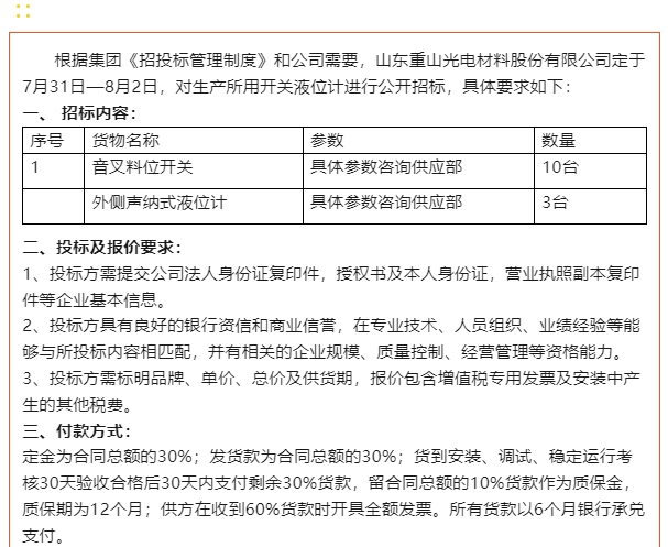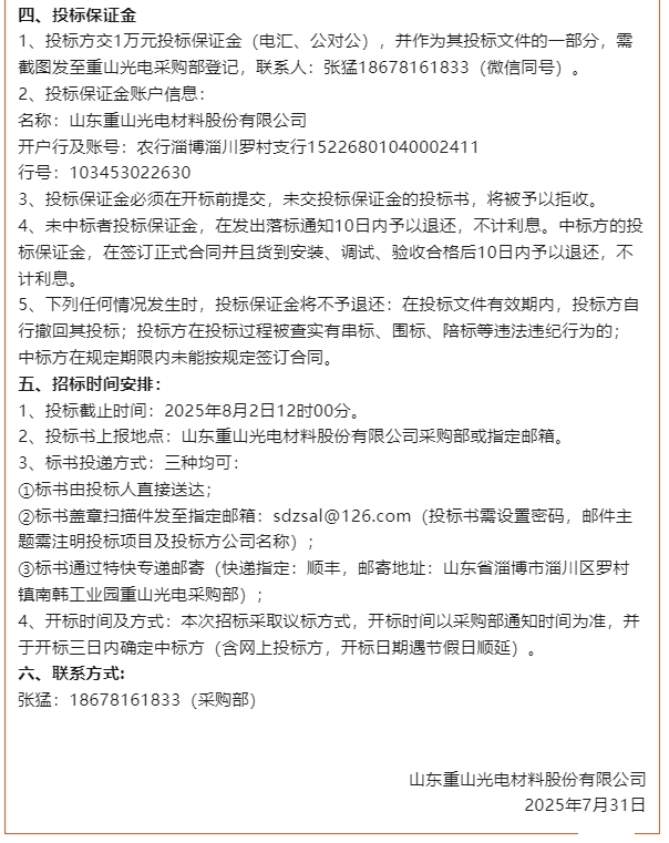 【招標(biāo)公告】重山光電