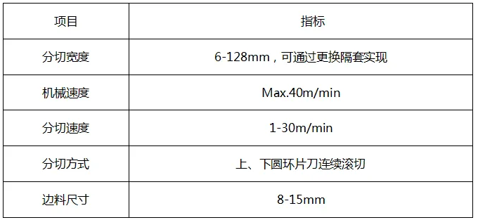 分切機用于輥壓后道工序,將輥壓好的成卷極片分切成兩個或者多個小卷,極片寬度≤350mm,分切寬度為8-128mm,分切速度≥15m/min;刀片為鎢鋼合金刀,刀架為130型??赏ㄟ^更換隔套,實現(xiàn)不同的分切寬度。