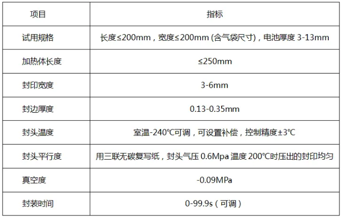 真空預封機用于注液靜置后的軟包鋰氟化碳電池真空抽氣、熱壓封口,其工作流程是電池放入后,抽-90KPa的負壓,使電芯內的空氣排除;然后對軟包電池進行封裝的功能。