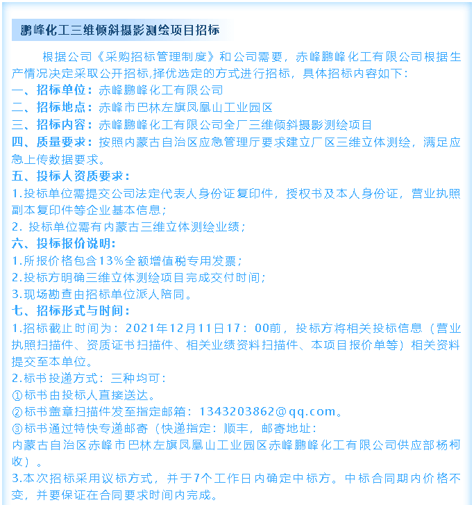 【招標(biāo)公告】鵬峰化工