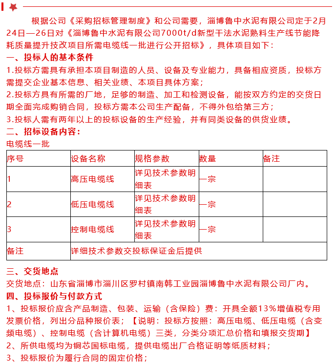 【招標(biāo)公告】魯中水泥