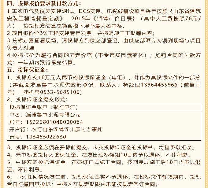 【招標(biāo)公告】魯中水泥