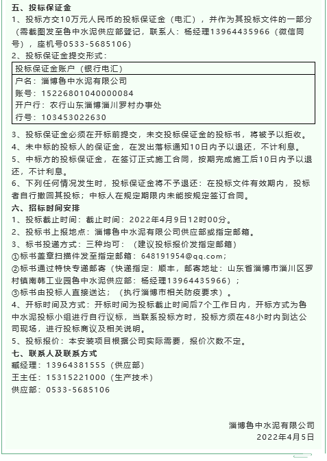 【招標公告】魯中水泥