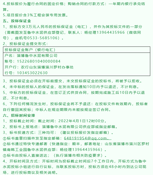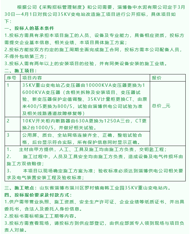 【招標公告】魯中水泥