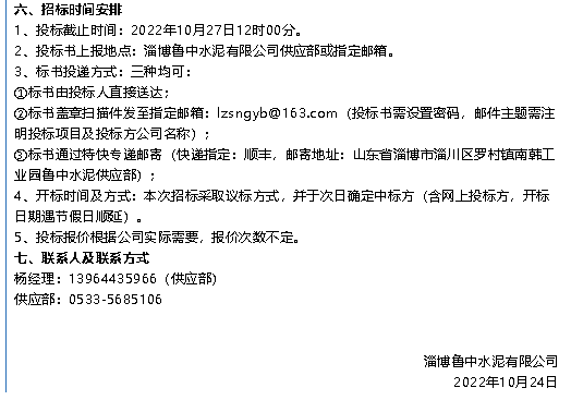 【招標(biāo)公告】魯中水泥、鵬峰化工