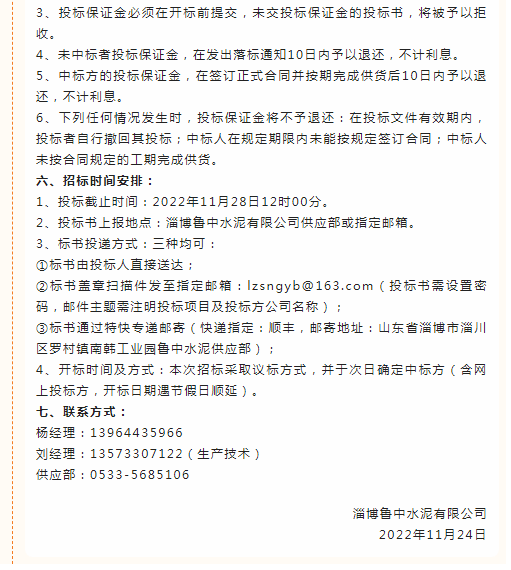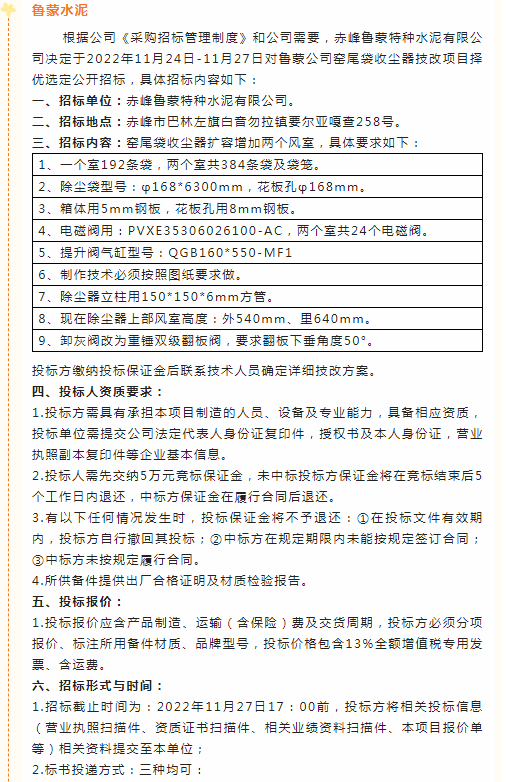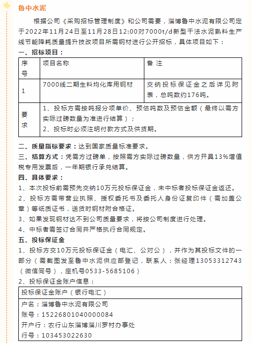【招標(biāo)公告】魯蒙水泥、魯中水泥