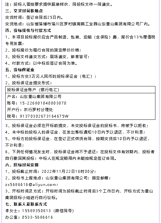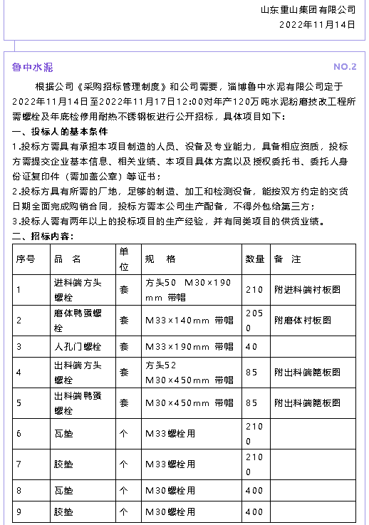 【招標(biāo)公告】重山集團(tuán)、魯中水泥