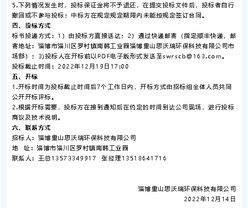 【招標(biāo)公告】魯中水泥、重山思沃瑞