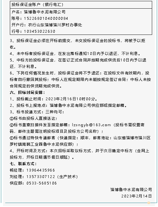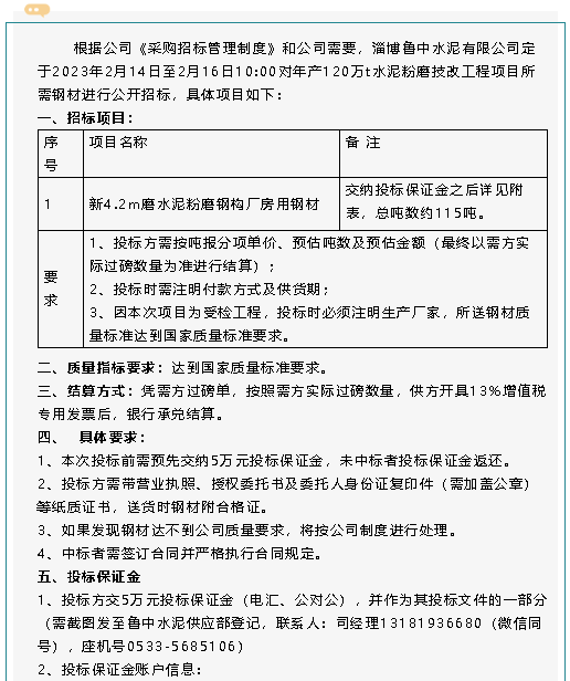 【招標公告】魯中水泥
