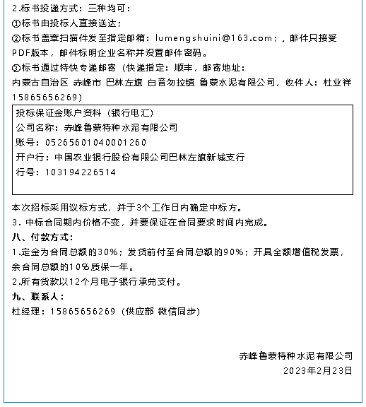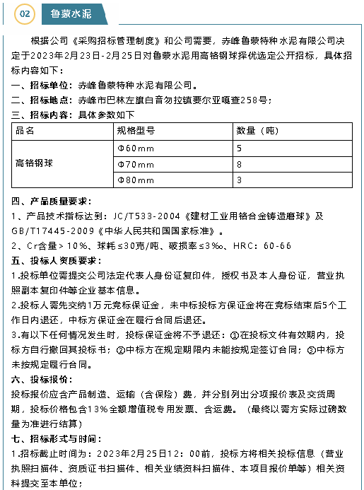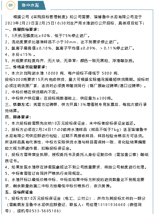 【招標(biāo)公告】魯中水泥、魯蒙水泥