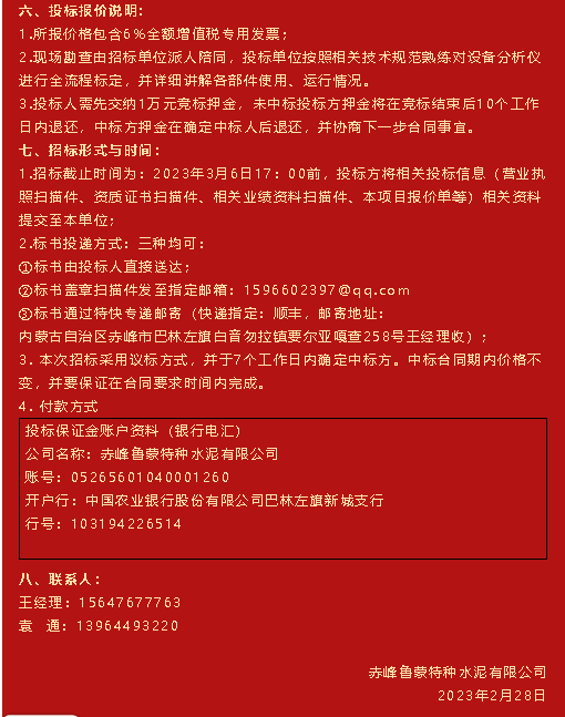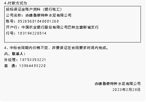 【招標(biāo)公告】魯蒙水泥