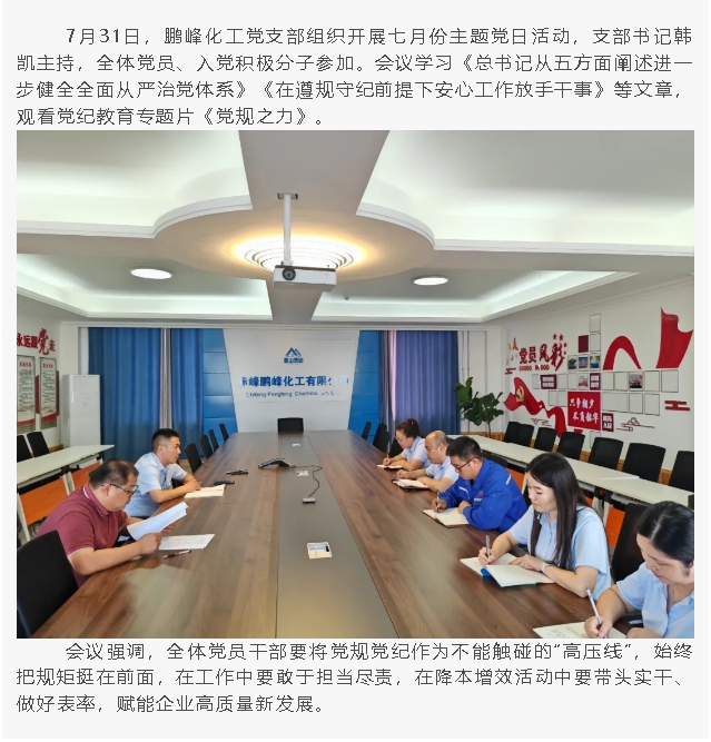 【黨建】鵬峰化工黨支部組織開展七月份主題黨日活動