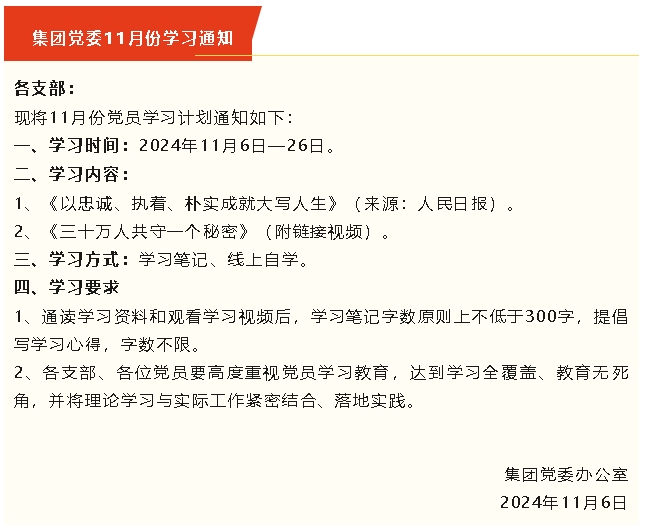 【通知】集團(tuán)黨委11月份學(xué)習(xí)通知
