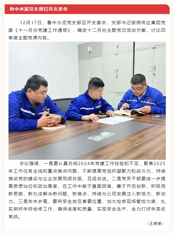 【黨建】魯中水泥黨支部召開支委會、開展主題黨日活動