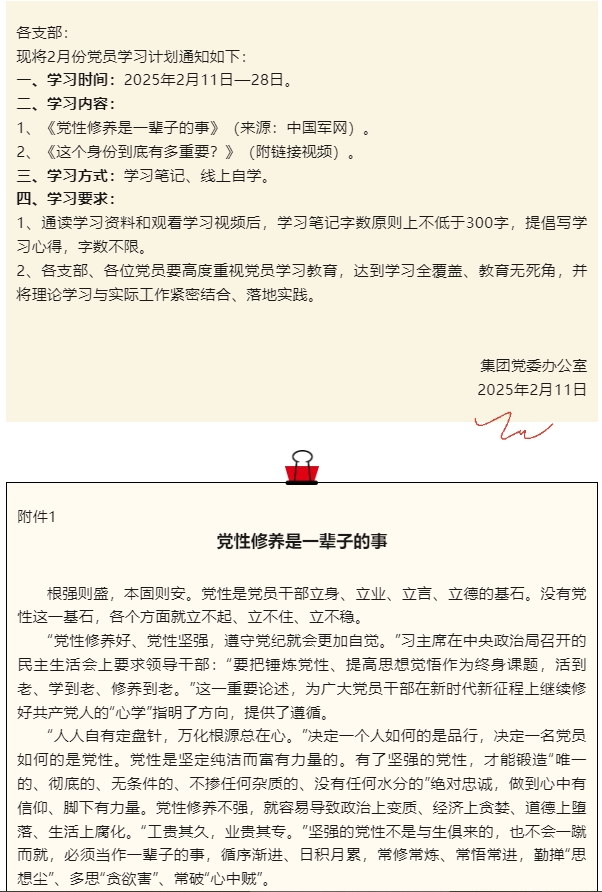 【通知】集團(tuán)黨委2月份學(xué)習(xí)通知