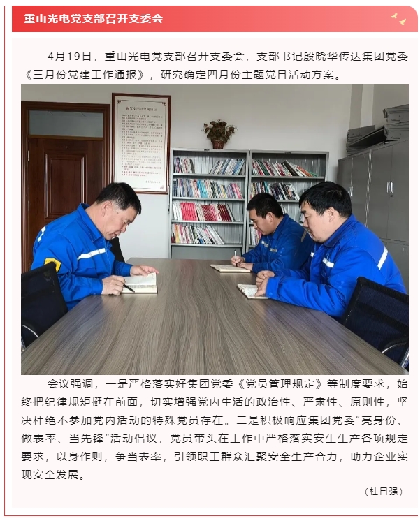 【黨建】南韓化工黨支部、魯中水泥黨支部、重山光電黨支部召開支委會